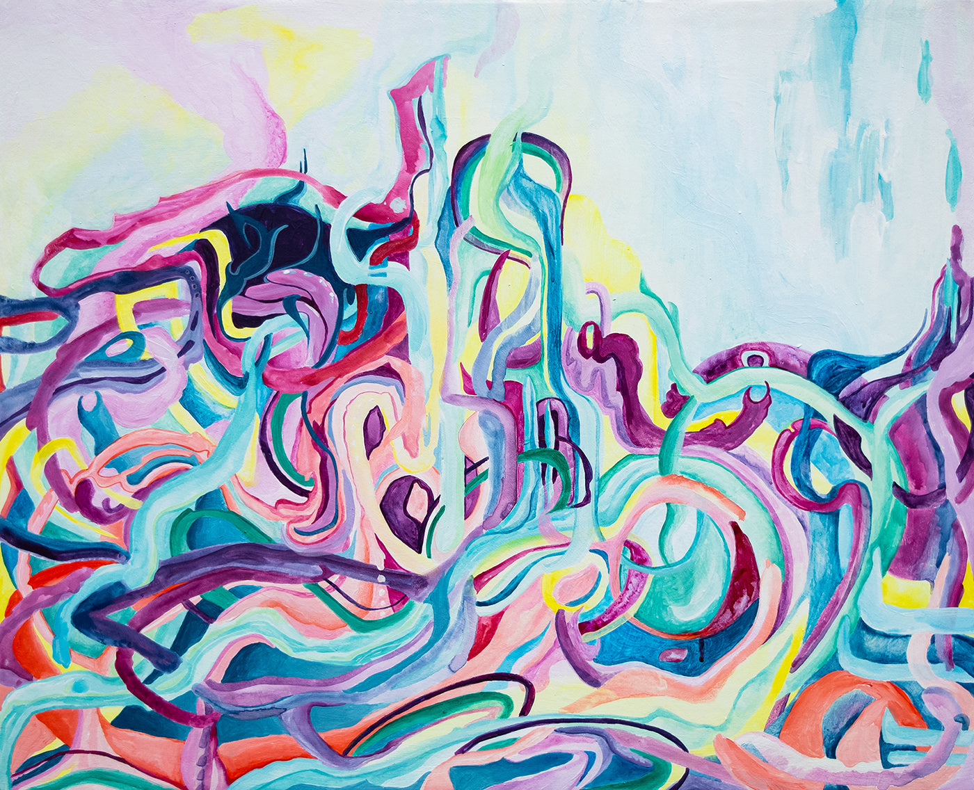 • Life arising from the void, as a vibrant dance of forms weave themselves into existence.